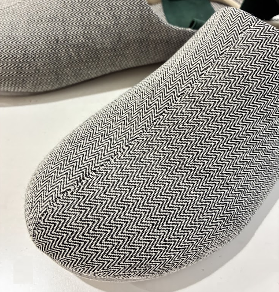 ヘリンボーン生地で、日常生活になじむデザイン。