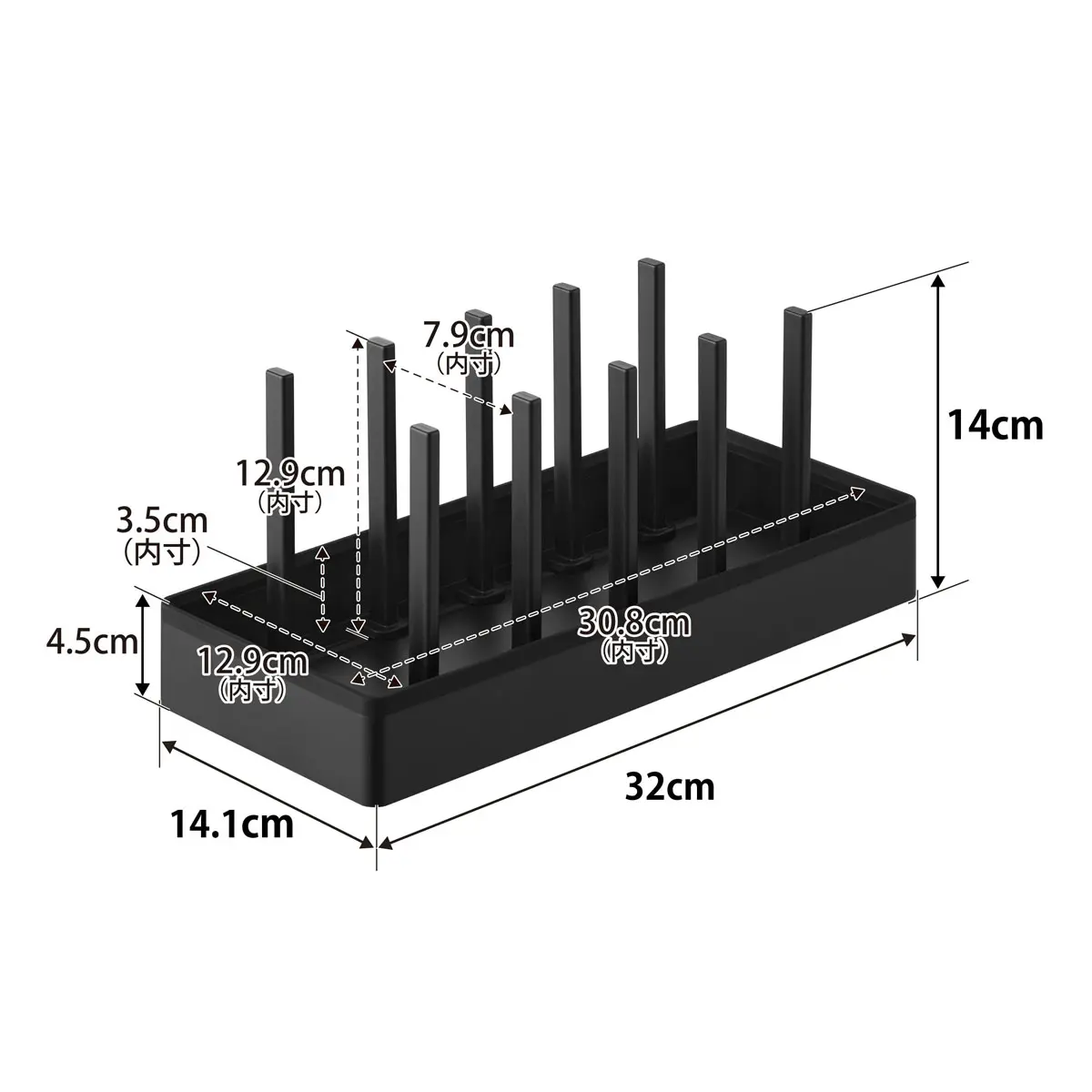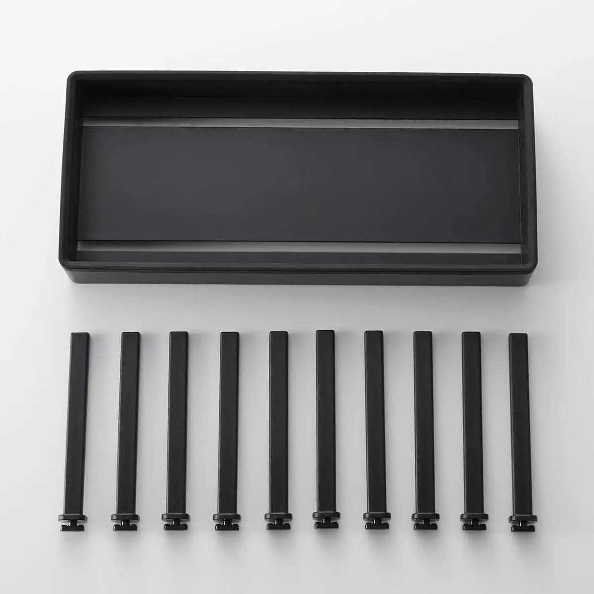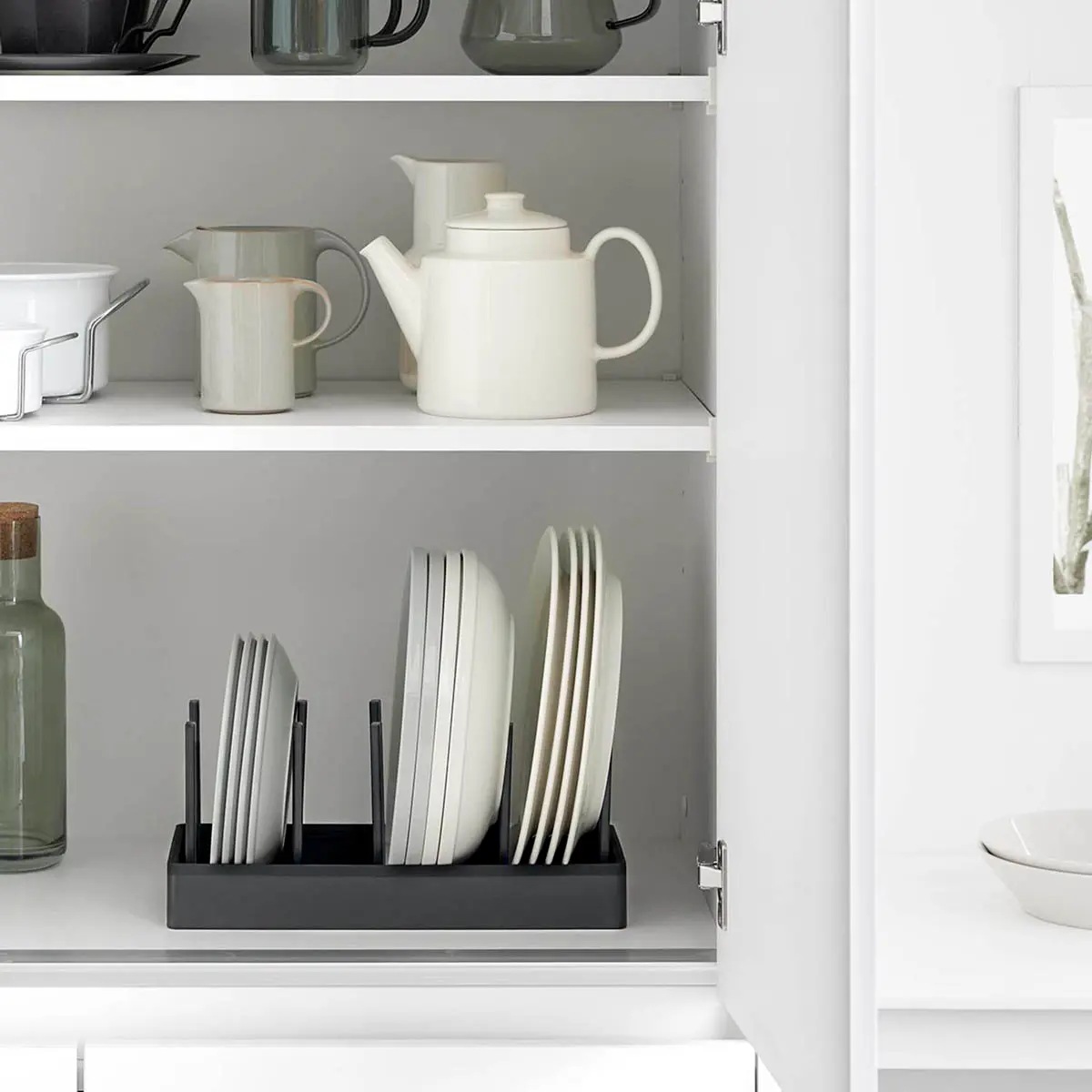 本体裏面にも滑り止めが付いているので、引き出しの開閉時にずれにくくキズから守ります。仕切り幅を自由に変えることができるので、食器スタンドとして食器棚への設置もおすすめです。