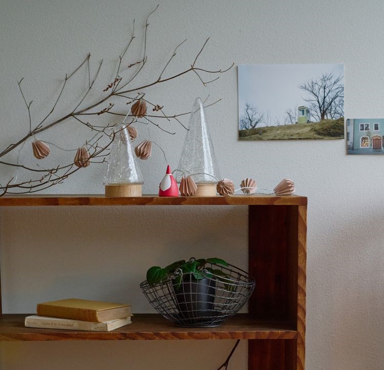 ランタン風の紙シェードが灯りを包み込み、空間にほのかな温もりをプラス。