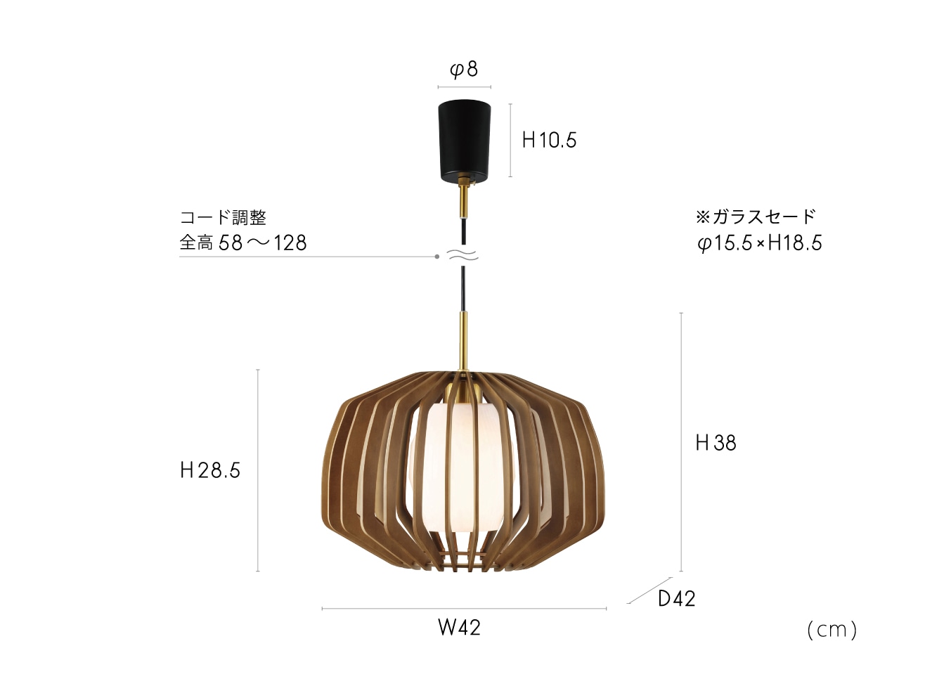 光源をガラスとウッドセードが包み込む、素材の調和をお楽しみください。