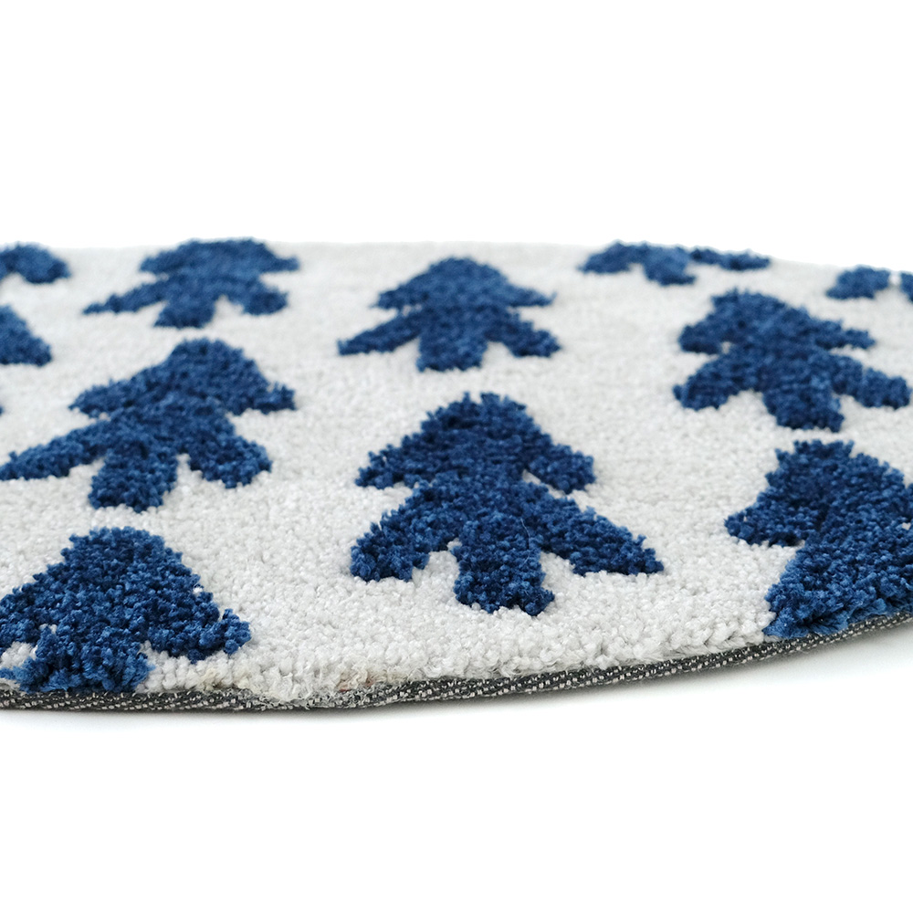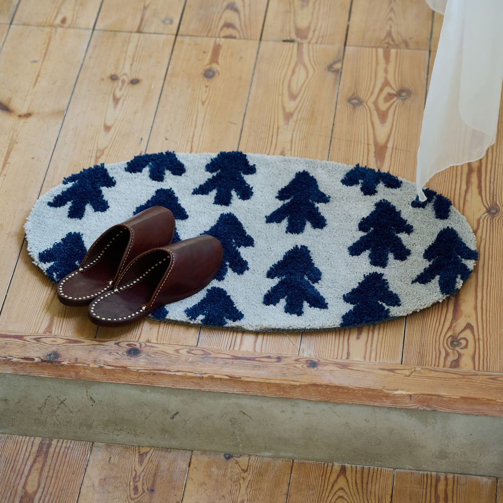 糸で絵を描くように織り上げた木立モチーフ柄が印象的な玄関マット。