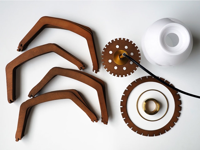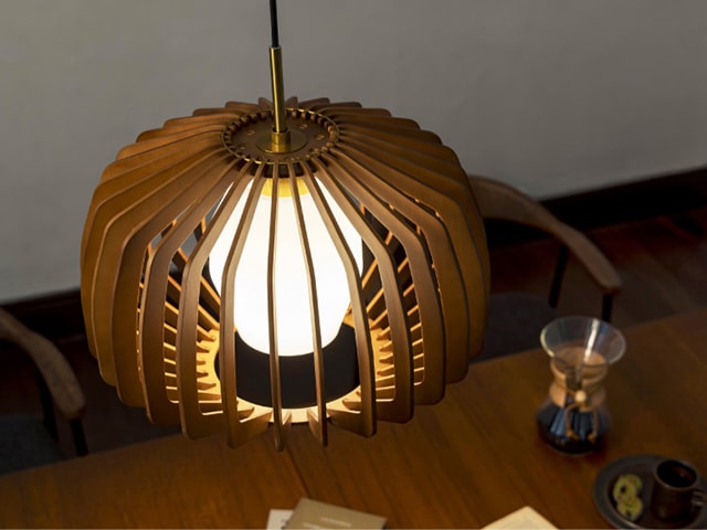 光源をガラスとウッドセードが包み込む、素材の調和をお楽しみください。