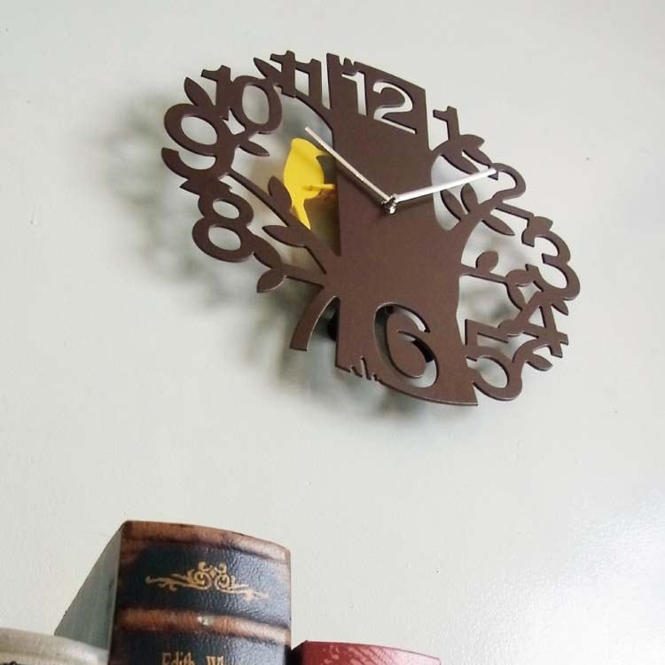 ビタミンカラーのキツツキがほのぼのとしたひと時を演出します。