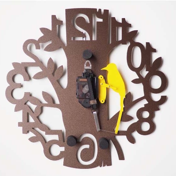 クチバシで木の幹をつつくキツツキの独特の動きを振り子で表現しました。