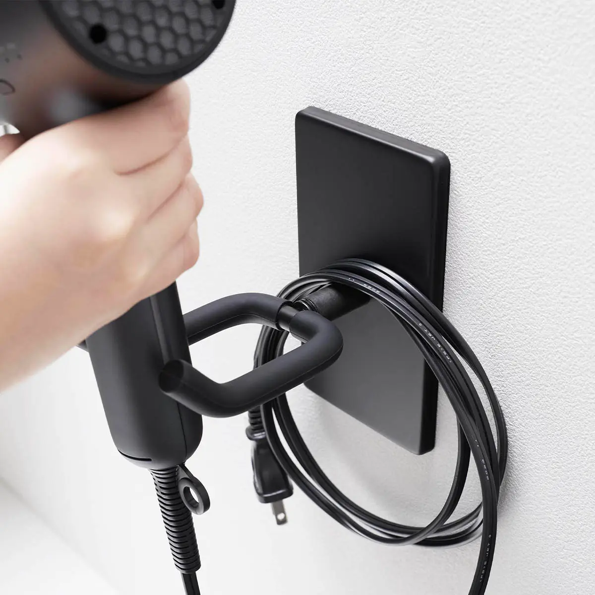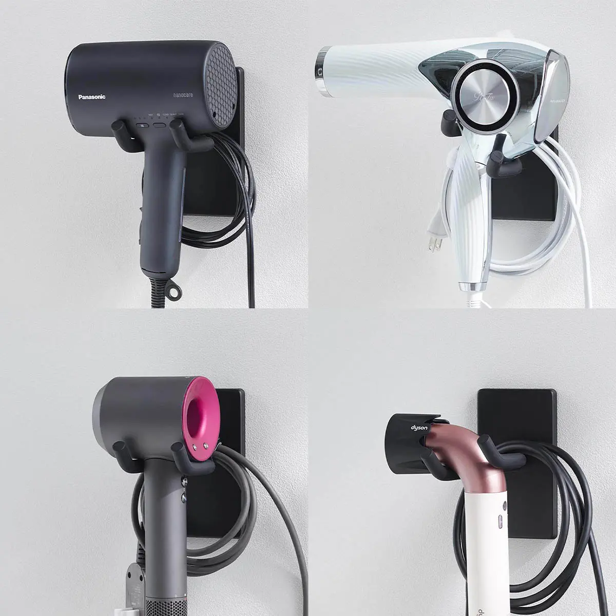 ヘアドライヤーの形に合わせて角度を調整しながら収納できるドライヤーホルダーです。